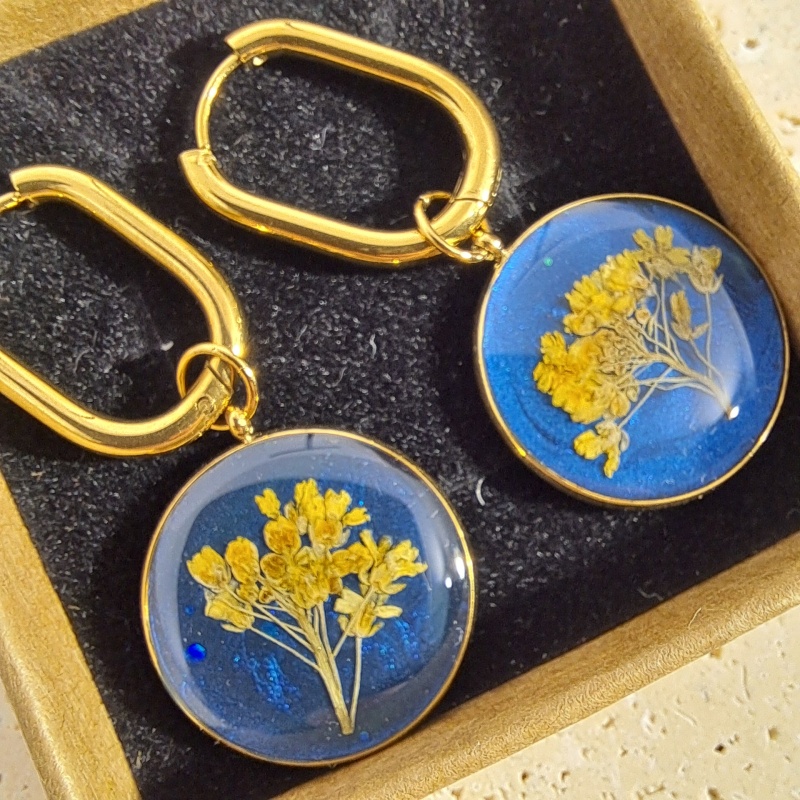 collier bleu et fleur jaune